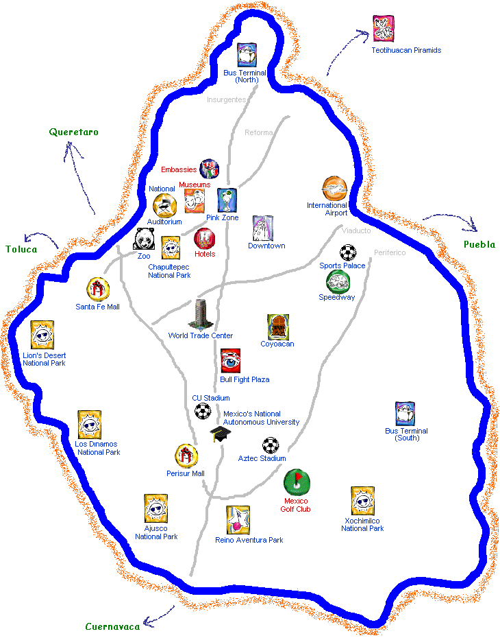 Mexico City, capital and largest city of Mexico, in the Distrito Federal (Federal District), and in the world. At the 1990 census, Mexico City proper had a population of 8,236,960. The metropolitan area had 15,047,685 people, making it the largest urban area in the world. More than half of Mexico's industrial output is produced in or near Mexico City. Manufactures include textiles, chemicals and pharmaceuticals, electrical and electronic items, steel, and transportation equipment. Major highways and railroads radiate from the city to all parts of the country. It is the l The size and grandeur of the city are staggering. It is not only the oldest continuously inhabited city in the Western Hemisphere, but also carries the burden of being the largest city the world has ever known. The center of the city has historically been the Plaza of the Constitution, which occupies the site of the central square of the ancient Aztec city of Tenochtitlán. The city's rapid growth has created several problems, including air pollution, inadequate water supply, and the sinking of parts of the downtown area into the soft lake deposits that underlie much of the city. Points of interest include the National Museum of Anthropology, which houses exhibits of pre-Columbian artifacts, and the Basilica of the Virgin of Guadalupe, Mexico's most important religious shrine.